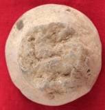 It is a terracotta lead. Base portion is flat. Circular knob is broken.