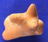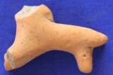 A well animal figurine probably a bull dog. Eyes are represented by incised pellets and nostrils by holes. A hump on the back and long face with prick ears. Frontal legs and hind of the body are missing. Circular punches and incised lines over the body.
