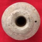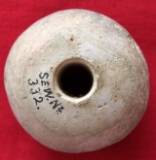 It is a terracotta animal bead. Oval in shape with a central perforation. The perforation is relatively thick. Striation marks around the neck. Lower portion is secondary polished.