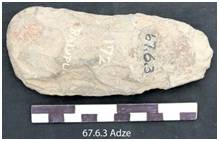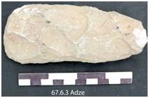 Fully flaked on both the faces. The ventral face is centrally convex with ends abruptly slanted. Dorsal surface is somewhat concave, rounded thin butt, right margin little convex and left being concave. Bi-convex in median and longitudinal section.