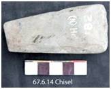 Ground all over retaining a few scars on the ventral and lateral margin has a longitudinal recent fracture on the dorsal surface. Ventral surface is convex with beveled at the cutting edge. The edge is straight and sharp. The lateral margins are thick and little roundish. Butt is straight with elliptical poll. Median section is oval and longitudinal is triangular.
