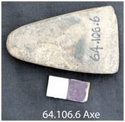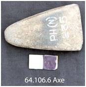 Partly ground on both the faces with marks of chipping on the ventral half and alternately along the lateral margins. The margins gradually taper towards the butt. The ventral surface is convex and dorsal is flat. Edge is symmetrically convex and beveled on the dorsal retaining marks of use.