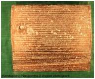 | Description / विवरण | This is a set of six copper plates. The set of plates is attached to them containing a royal seal and emblem of a bull, crescent moon, trisula, damaru etc. the seal is in the shape of an expanded lotus and the petals are slightly bent upwards. There are altogether 207 lines of writing the language is Sanskrit the script is nagari. The grant records that the king have granted 50 vatis of land, consisting of several plotes, situated in different villages. The kings order relating to the execution of the grant passed through the puro- srikarana sivadasa Nayaka who did the measurement of the area granted. |