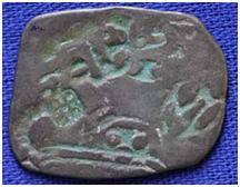 | Description / विवरण | The coin is an imperial type of Punch- marked coin. The shape of the coin is irregular. Obverse Taurine, bird, animal and other symbols are indistinct due to silver sulphite formation on the surface of coin. Reverse Dot within a circle flanked by two taurines and some indistinct symbols due to abrasion. |