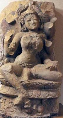 | Description / विवरण | The four armed Durga seated on double petalled lotus pedestal in lalitasana pose .The right major hand and additional hands are damaged. The left major hand damaged but holds from Srifala and additional hand holds from kapala. The nose and mouth portion are damaged. This image s breast portion as broken. Having dishaveled hair the ornaments mukuta. The image is in lotus pedestal niches middle portion seated from lion. The right leg of Durga have on the lion. Found cripper on the lotus pedestal. We found Bramha on the right side and Vishnu image on this left side on this sculpture. Bramha seated on the Bhumisparsa mudra and Vishnu seated on the Varada mudra. Bramha additional left hand holds ladle and principal hand holds book. He is seated on lotus pedestal. He has three head and right additional hands are missing. Vishnu right additional hand holds from Sankha but left additional hand holds Chakra and principal hand are not clear. |
