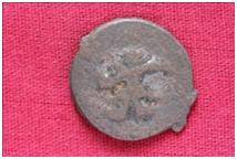 | Description / विवरण | The coin is circular in Shape. Obverse Kushana type king standing with his Right hand curved Upwards and Left arm extended. Reverse Probably the figure of Moon-God with right arm curved Upwards and crescent above the Left shoulder |