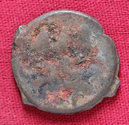 | Description / विवरण | The shape of the coin is circular. Obverse Probably the figure of MAO or Moon-God with right hand downwards and the crescent above the left shoulder. Reverse Three hills or cone like object place in a straight line and below them there is inscription. |