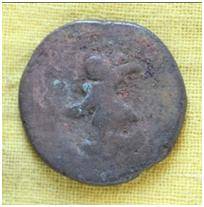 | Description / विवरण | The shape of the coin is circular. Obverse- Kushana type king standing with his right arm downward and left arm upward. Reverse- probably the figure of MAO or Moon God- with right arm curved and upward and the crescent above the left shoulder. |