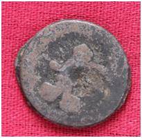 | Description / विवरण | The coin is circular in shape. Obverse- Kushana type king standing with his right hand curved upwards and the left hand extended. Reverse- Probably the figure of Mao or Moon God with right arm curved upwards and the crescent above the left shoulder. |