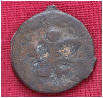 | Description / विवरण | The coin is circular in shape. Obverse- Kushana type king standing and both Left and Right hands are extended. Reverse- probably the figure of Mao or Moon God with Right arm curved Up wards and the crescent above the left shoulder. |