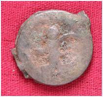 | Description / विवरण | The coin is circular in shape. Obverse- Kushana type king standing with his Right hand curved Up wards and the Left hand extended. Reverse- probably the figure of Mao or Moon God with Right arm curved Up wards and the crescent above the left shoulder. |