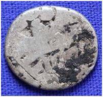 | Description / विवरण | The shape of the coin is circular. Obverse Six armed wheel and other symbols are indistinct due to abrasion. Reverse Symbols are indistinct due to abrasion. |