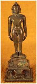 | Description / विवरण | This image is standing in kayotsarga pose over a double moulded lotus pedestal. Beneath the pedestal, there is a crescent moon. The hair has been coiled and gathered on the crown. |