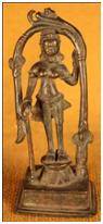 | Description / विवरण | This image is standing on a double molded lotus pedestal. She has two hands left hand holds a tree and right hand rest on a stick. She crowned with mukuta and wears ear rings, necklace, armlet, bangles, katibandana and nupura. |