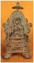 | Description / विवरण | This image is seated on Padmasana pose on double petal lotus pedestal on Bhumisparsa Mudra. The hair has been coiled and gathered on the crown. The image is surrounding by a torana. Over the torana there is a halo. Halo is crowned by a chhatra. Beneath of the pedestal flanked by two lions. |