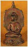 | Description / विवरण | It is an image of Chadraprabha seated in Dhyana-mudra on a lotus pedestal. His hair is gathered on the crown in a conical form. Depicted on the central petal of the front side of the lotus seat is the crescent moon. A decorated oval halo is placed behind the image. |