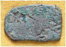 | Description / विवरण | The coin is irregular in shape. Obverse Contains four symbols. Sun, Tree, other symbols are not clearly visible. Reverse This side is Blank. |