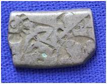 | Description / विवरण | The coin is irregular in shape but one corner is chipped. Obverse Contains four symbols i.e. Chakra, Sun, Human figure, Tree. Reverse Contains one symbol i.e. leaf. It is an imperial type of Punch-marked Coin. |