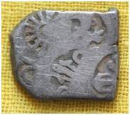 | Description / विवरण | It is an imperial type of Punch-marked Coin. The coin is irregular in shape. Obverse Contains five symbols i.e. A vertical line flanked by a flag and a gate on either side, animal figure, Sun, three arched gate, six armed wheel. Reverse Contains one symbolwhich is indistinct. |