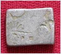 | Description / विवरण | It is an imperial type of Punch-marked Coin. The coin is rectangular in shape. Obverse Contains four symbols i.e. Sun, six armed and other symbols are indistinct. Reverse Blank. |
