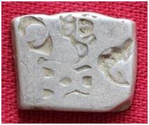| Description / विवरण | It is an imperial type of Punch-marked Coin. The coin is irregular in shape. Obverse Contains four symbols i.e. Sun, four arched hill, tree, other symbol is indistinct. Reverse Contain one symbol i.e. indistinct. |