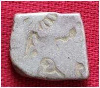 | Description / विवरण | It is an imperial type of Punch-marked Coin. The coin is irregular in shape. Obverse Contains four symbols i.e. Sun, river, taurine, other symbol is indistinct. Reverse Contain one symbol which is indistinct. |