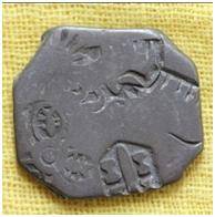 | Description / विवरण | It is an imperial type of Punch-marked Coin. The coin is Octagonal in shape. Obverse Contains five symbols i.e. Sun, three fishes in a wheel, taurine, moon, another symbol is indistinct. Reverse Contains four symbols i.e. Ujjain, moon other are indistinct. |