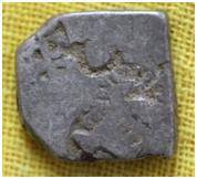 | Description / विवरण | It is an imperial type of Punch-marked Coin. The coin is irregular in shape but two corner portions are broken. Obverse Contains four symbols i.e. Sun, animal figure, Ujjain symbo and another is indistinct. Reverse Contains two symbols i.e. Caduceus, other symbol is indistinct. |