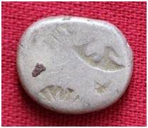 | Description / विवरण | It is an imperial type of Punch-marked Coin. The coin is oval in shape. Obverse Contains four symbols i.e. Taurine, Sun, two arch hill, other symbol is indistinct. Reverse Contains two symbols i.e. Tree, indistinct. |