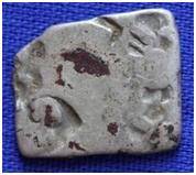 | Description / विवरण | It is an imperial type of Punch-marked Coin. The coin is irregular in shape. One corner is broken. Obverse Contains five symbols i.e. Sun, wheel, mountain, another symbols are indistinct. Reverse Contains one symbol i.e. indistinct. |