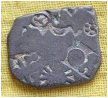 | Description / विवरण | It is an imperial type of Punch-marked Coin. The coin is irregular in shape. Obverse Contains 6 symbols i.e. Sun, Human figure, wheel, animal, taurine, other symbols are indistinct. Reverse Contains 2 symbols i.e. wheel and another is indistinct. |