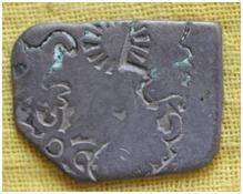 | Description / विवरण | It is an imperial type of Punch-marked Coin. The coin is Pentagonal in shape. Obverse Contains 5 symbols i.e. Sun, six armed, animal, other are indistinct. Reverse Contains 3 symbols i.e. four square in a box, others are indistinct. |