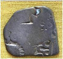 | Description / विवरण | It is an imperial type of Punch-marked Coin. The coin is irregular in shape. Obverse Contains 5 symbols i.e. Sun, six armed, wheel, three arched mountain, other are indistinct. Reverse Contains 3 symbols which is indistinct. |