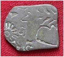 | Description / विवरण | It is an imperial type of Punch-marked Coin. The coin is irregular in shape. Obverse Contains 5 symbols i.e. Sun, six armed, animal figure, wheel tree and animal figure. Reverse Contains 4 symbols i.e. three dot in circle, tree, other 2 symbols are indistinct. |