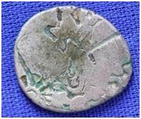 | Description / विवरण | It is an imperial type of Punch-marked Coin. The coin is circular in shape. Obverse Contains 5 symbols i.e. Bull, animal stand on two arched hill, Sun, six armed, wheel, other symbol partly appeared which is not identified. Reverse Contains 3 symbols i.e. Animal figure, insect within a box, flower. |