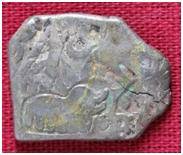 | Description / विवरण | It is an imperial type of Punch-marked Coin. The coin is heptagonal in shape. Obverse Contains 5 symbols i.e. Animal figure, wheel, tree, six armed, Sun, three arched hill. Reverse Contains 4 symbols i.e. tree, Moon, other are indistinct. |