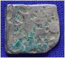 | Description / विवरण | The shape of the coin is irregular. Obverse Sun, tree and other symbols are indistinct. Reverse Blank. |