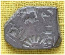 | Description / विवरण | The shape of the coin is irregular. Obverse Contains 4 symbols i.e. Sun, three arched gates, A vertical line flanked by a flag and a gate on either side, Taurine. Reverse Contains 1 minute symbol i.e. Three arched hill. |