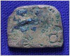 | Description / विवरण | The shape of the coin is irregular. Obverse Sun, Chakra and other symbols are indistinct. Reverse Blank. |