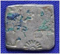 | Description / विवरण | The shape of the coin is irregular. Obverse Sun, Chakra and other symbols are indistinct. Reverse Blank. |
