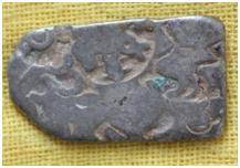 | Description / विवरण | The coin is an imperial type Punch- marked coin. The shape of the coin is irregular. Obverse Sun, Nandipada, six armed symbols, snack chakra and other symbols are indistinct. Reverse Chakra and Sun. |