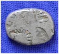 | Description / विवरण | The coin is an imperial type Punch- marked coin. The shape of the coin is irregular. Obverse Sun, mountain and other symbols are indistinct. Reverse Blank. |