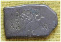 | Description / विवरण | The coin is an imperial type Punch- marked coin. The shape of the coin is irregular. Obverse Sun, bull, four dots within square and other symbols are indistinct. Reverse Chakra, Sun, four dots within square. |
