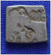 | Description / विवरण | The coin is an imperial type Punch- marked coin. The shape of the coin is rectangular. Obverse Sun, Nandipada, tree and other symbols are indistinct. Reverse Minute symbols. |