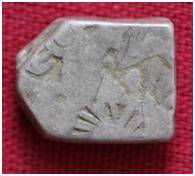 | Description / विवरण | The coin is an imperial type Punch- marked coin. The shape of the coin is irregular. Obverse Sun, Crescent Moon, three arched hill. Reverse Sun. |
