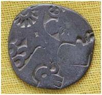 | Description / विवरण | The coin is an imperial type Punch- marked coin. The shape of the coin is round. Obverse Sun, six armed, elephant, bull, Nandipada. Reverse Mountain, Chakra and other symbols are minute |