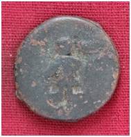 | Description / विवरण | The Shape of the coin is Circular. Obverse Kushana type king, standing with his right hand curved upwards and left hand extended. Reverse Probably the figure of MAO or Moon-God with right hand curved upwards and left hand not visible, the Crescent is above the left shoulder. |