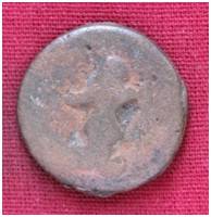 | Description / विवरण | The Shape of the coin is Circular. Obverse Kushana type king, standing with his right hand curved upwards and left hand extended. Reverse Probably the figure of MAO or Moon-God with right hand curved upwards and left hand not visible, the Crescent is above the left shoulder. |