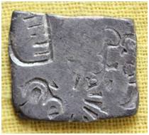 | Description / विवरण | The coin is an imperial type of Punch- marked coin. It is rectangular in shape. Obverse Sun, three arrows and taurines around a circle with an conspicuous dot, animal, three arched gate. Reverse Three arched gate and other symbols are defaced. |