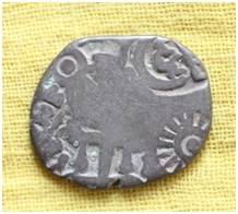 | Description / विवरण | The shape of the coin is coni-circutar. This is an imperial type of punch marked coin. Obverse Sun, six armed symbol, five arched hill over a hemispherical dome and an indistinct symbol. Reverse A dot in a square. |